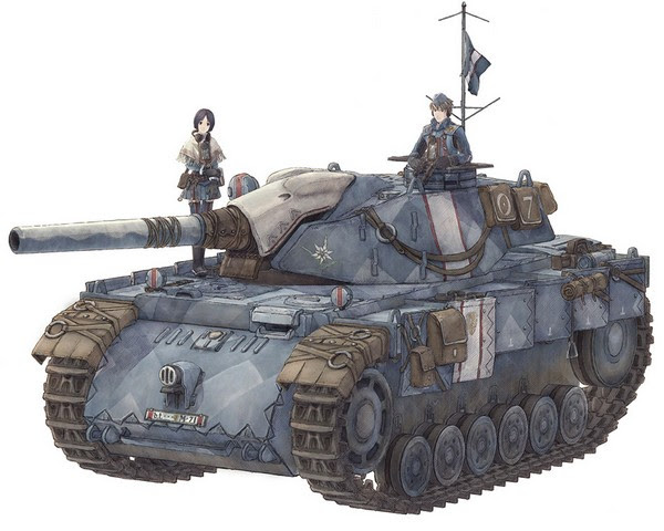 One thing that I felt was unusual about Valkyria Chronicles was that, despite the importance of tanks in the game (it was even originally going to be called "Gallian Panzers"), the crews of the tanks are never really established. The player's main tank is commanded by the protagonist and driven by the protagonist's sister, but the gunner, loader, and so on are never really established (if they're even there). The nature of a tank crew seemed like a natural place to foster relationships, so it seemed odd that they missed out on that when they went to so much trouble to make 50+ soldiers for the platoon. They tried to connect the vehicle to its commander (Welkin for the main tech, Zaka for the light tank acquired later in the game), but by doing so they sort of messed up the logical dynamic. In general, there seems to be an aversion in a lot of media to "crew-operated" vehicles, perhaps due to the fact that they play what some would consider to be mundane, redundant roles.